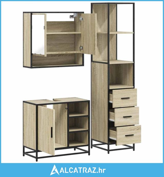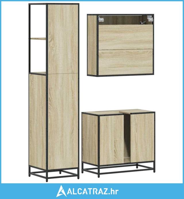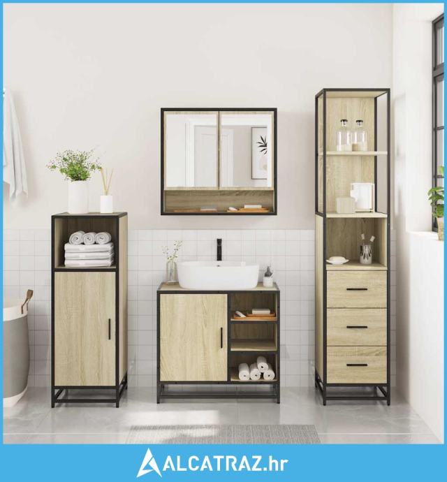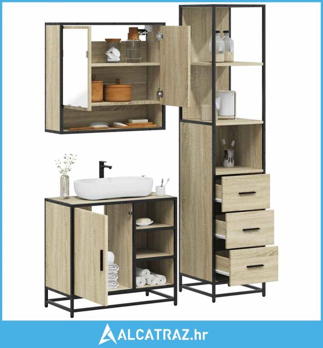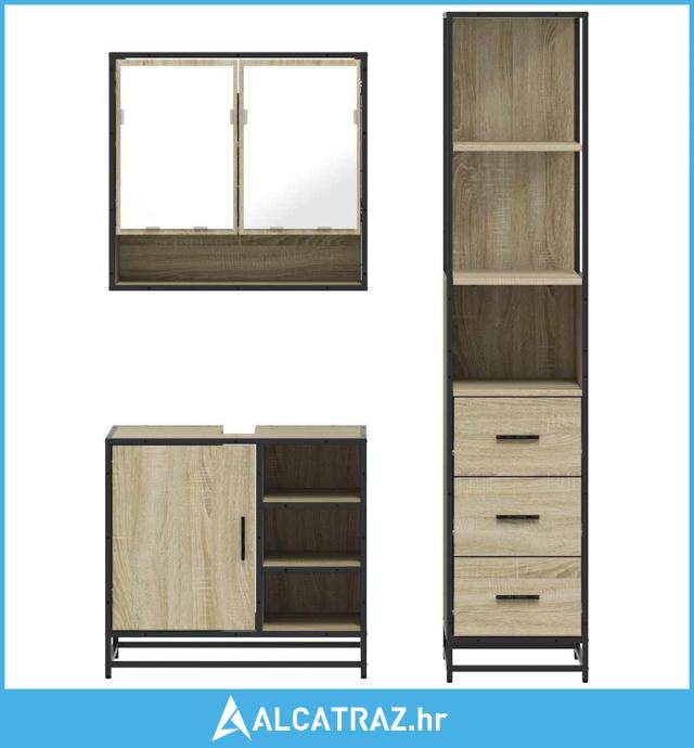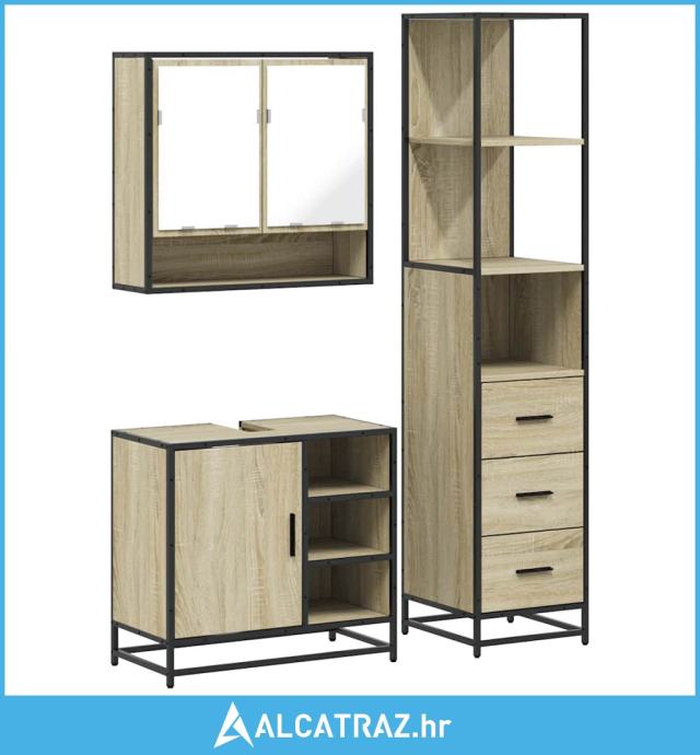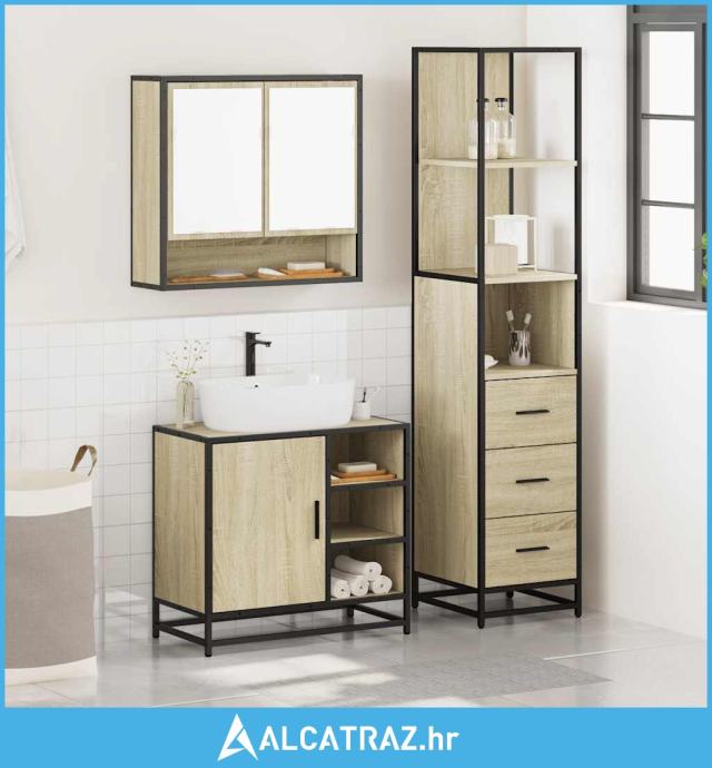 3-dijelni set kupaonskog namještaja boja hrasta sonome drveni - NOVO