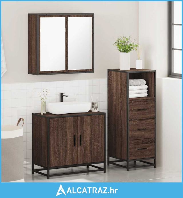 3-dijelni set kupaonskog namještaja boja smeđeg hrasta drveni - NOVO