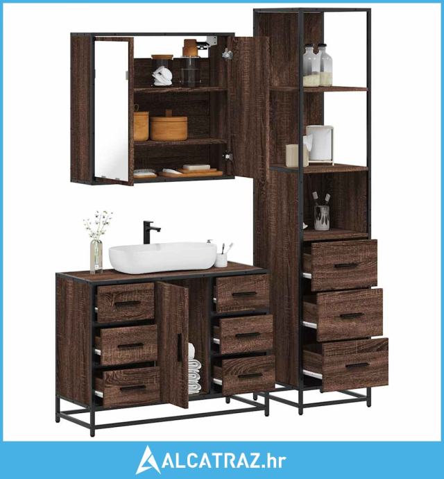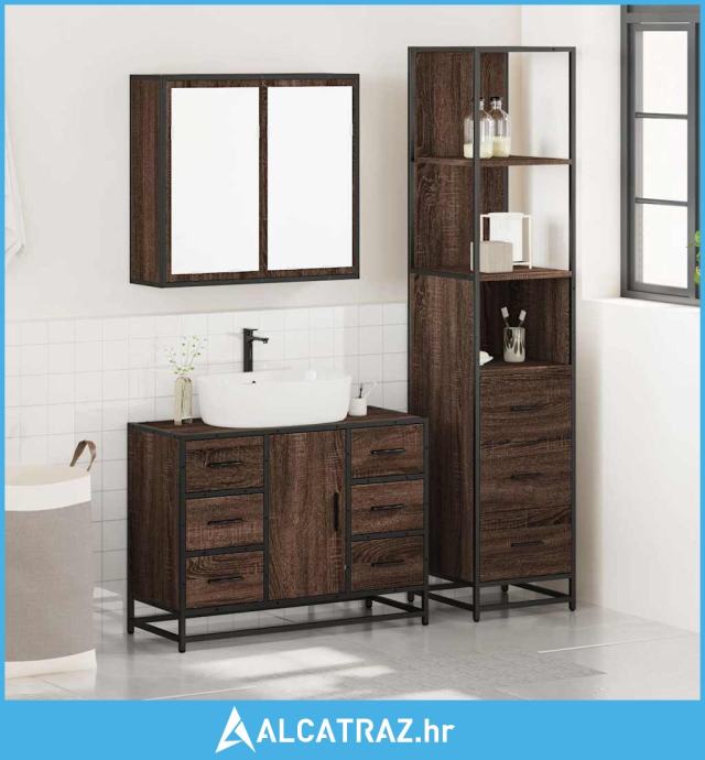 3-dijelni set kupaonskog namještaja boja smeđeg hrasta drveni - NOVO