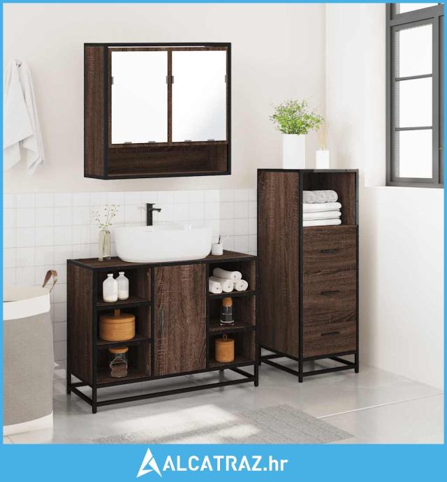 3-dijelni set kupaonskog namještaja boja smeđeg hrasta drveni - NOVO