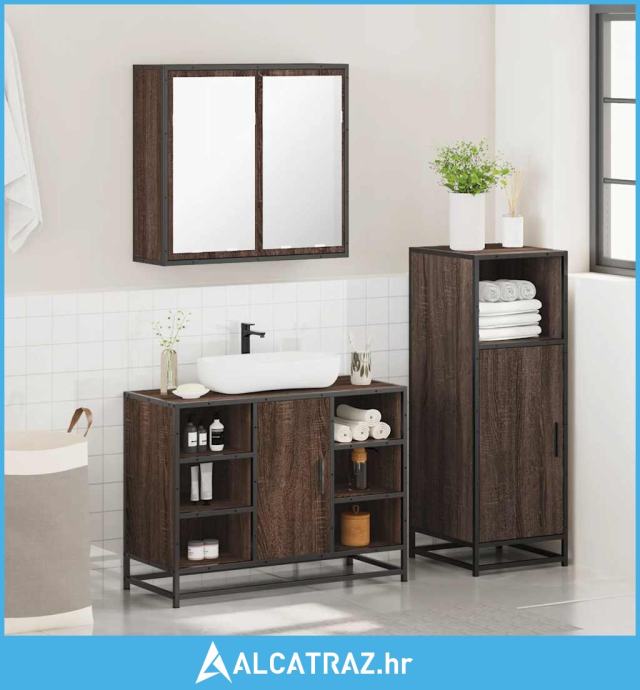 3-dijelni set kupaonskog namještaja boja smeđeg hrasta drveni - NOVO