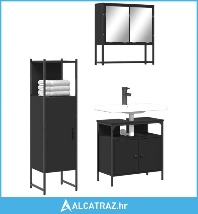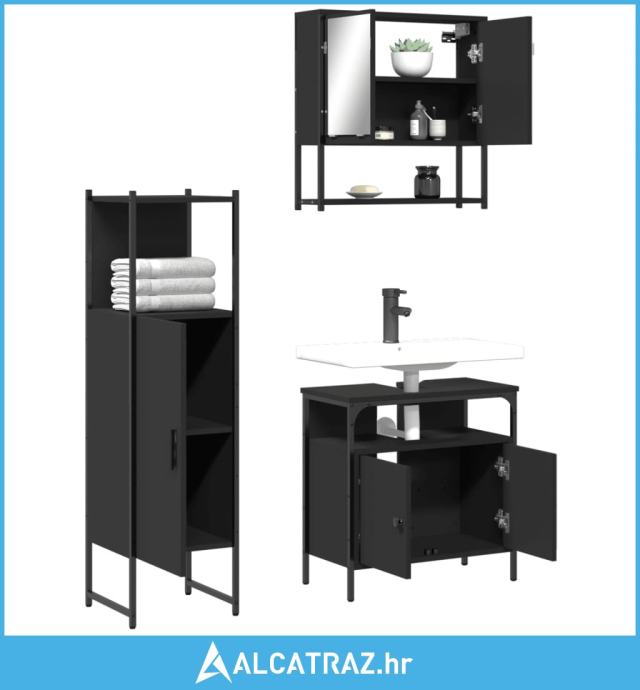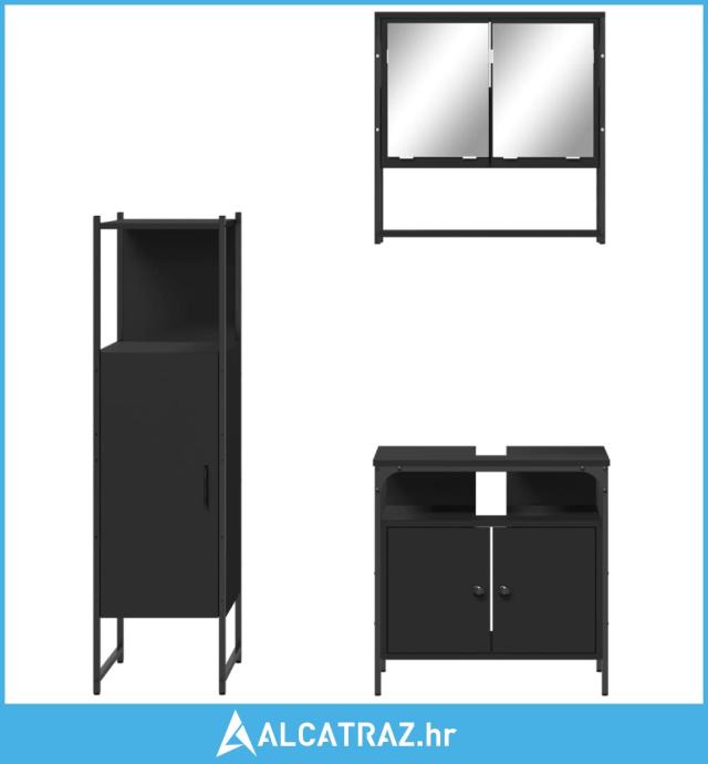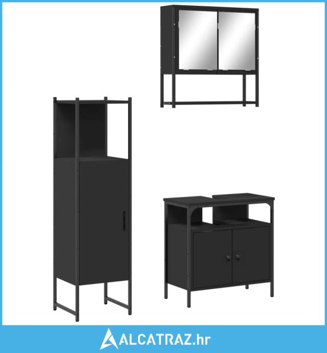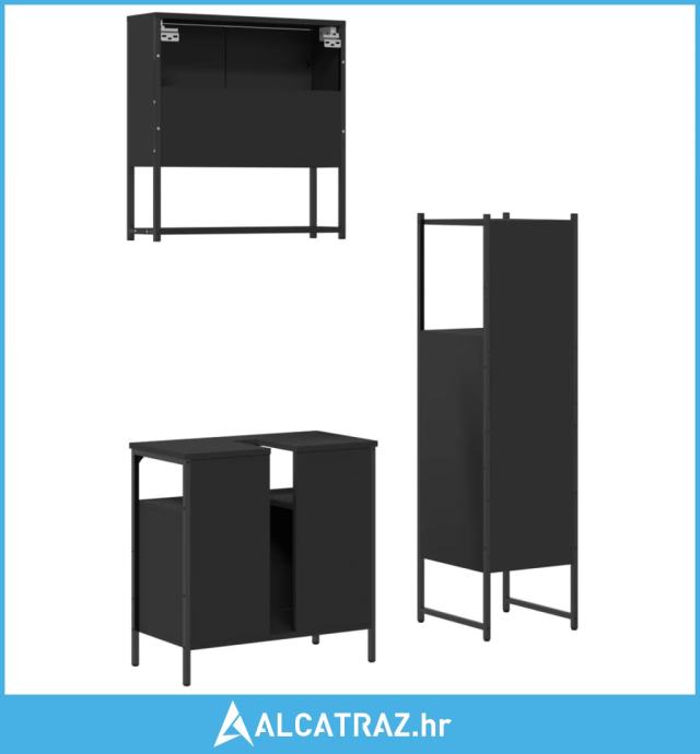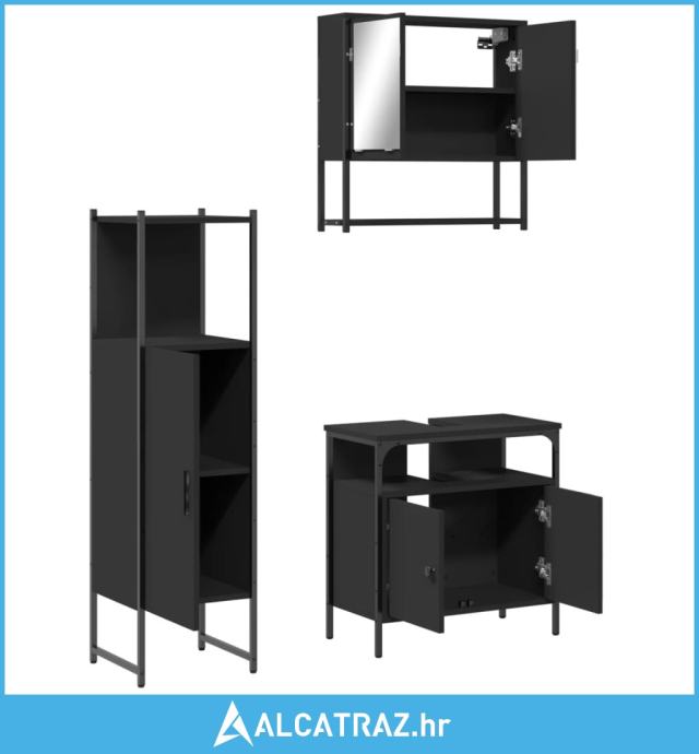 3-dijelni set kupaonskog namještaja crni od konstruiranog drva - NOVO
