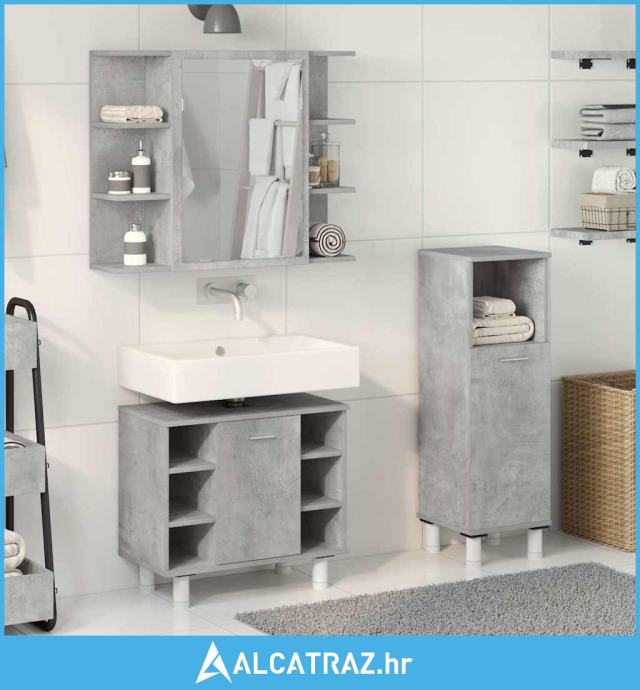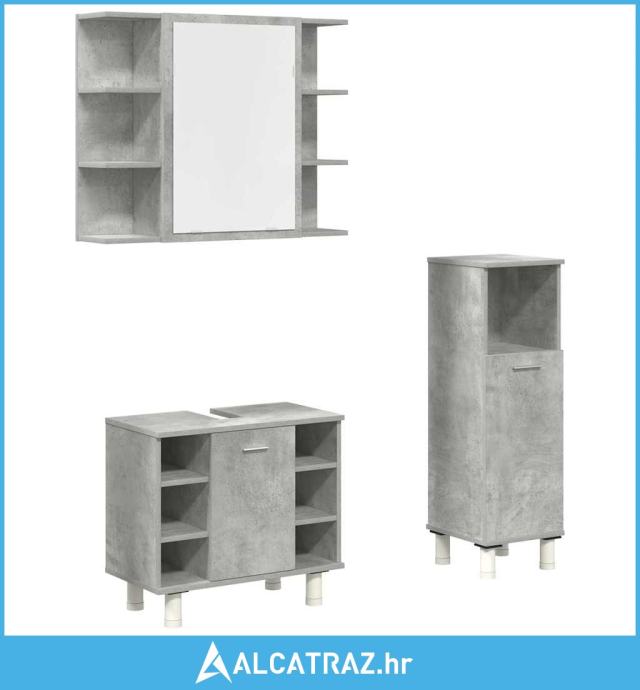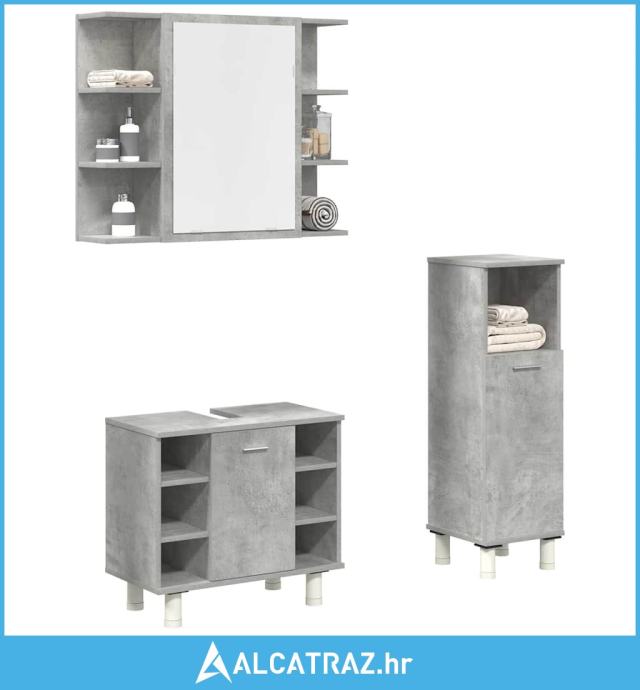 3-dijelni set kupaonskog namještaja siva boja betona drveni - NOVO