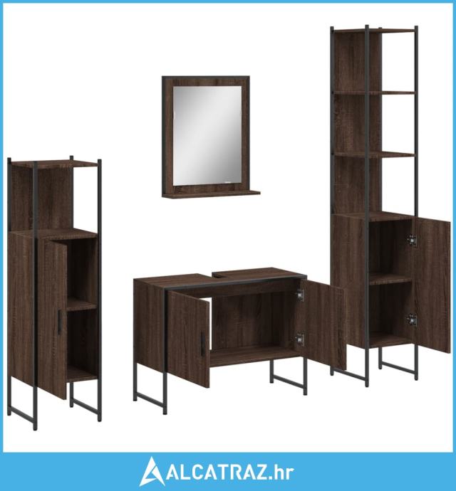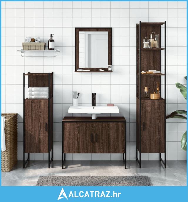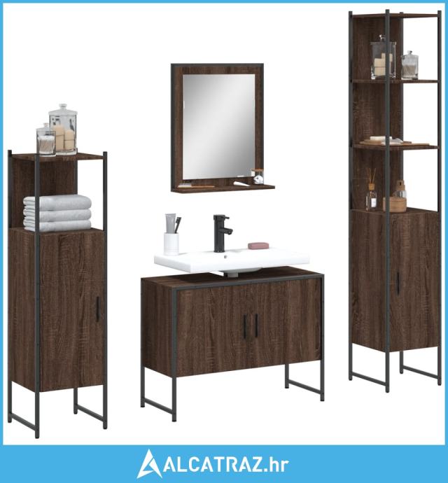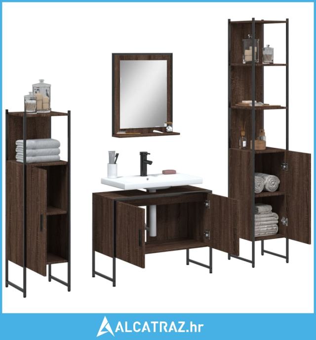4-dijelni set kupaonskih ormarića boja smeđi hrasta drveni - NOVO