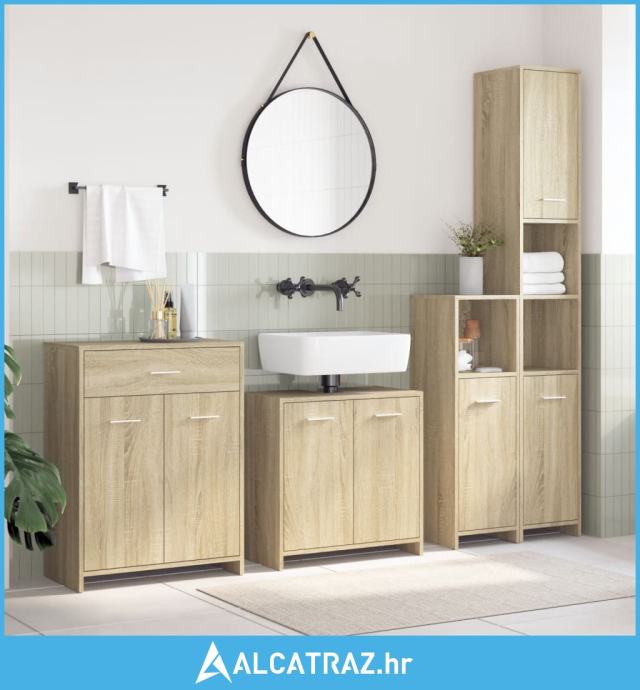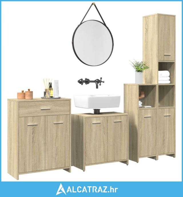 4-dijelni set kupaonskog namještaja boja hrasta sonome drveni - NOVO