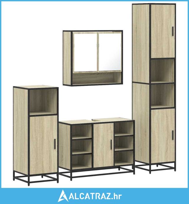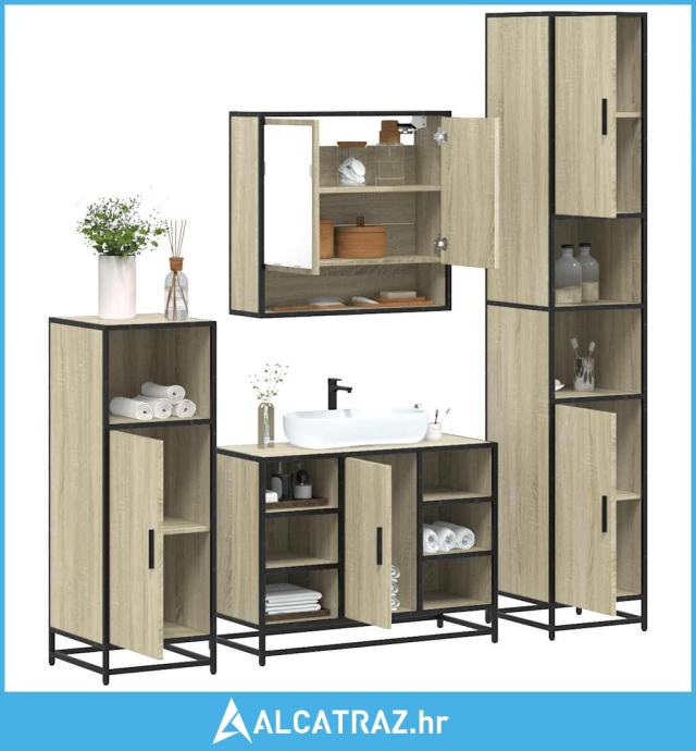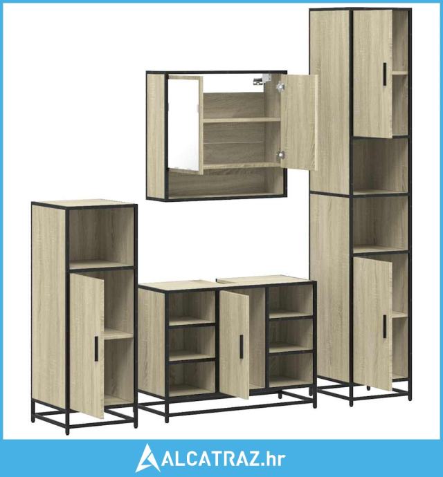 4-dijelni set kupaonskog namještaja boja hrasta sonome drveni - NOVO