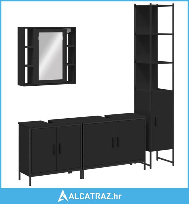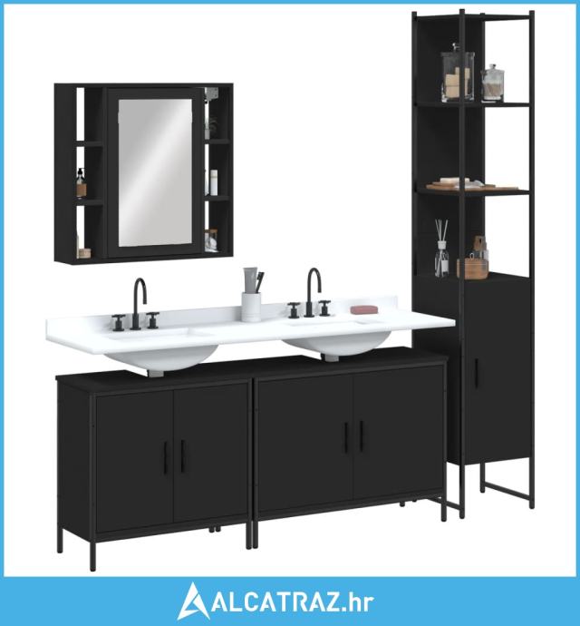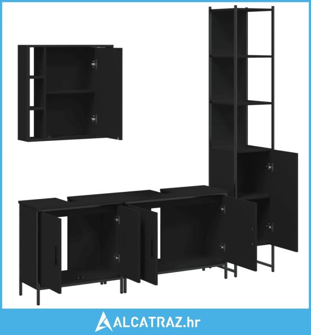 4-dijelni set kupaonskog ormarića crni od konstruiranog drva - NOVO