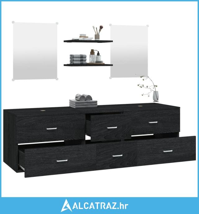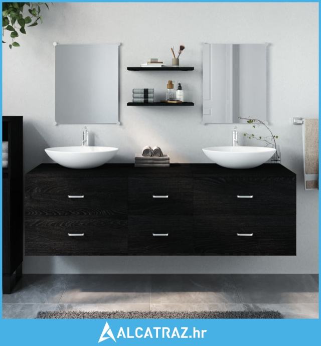 5-dijelni set kupaonskog namještaja crni od konstruiranog drva - NOVO