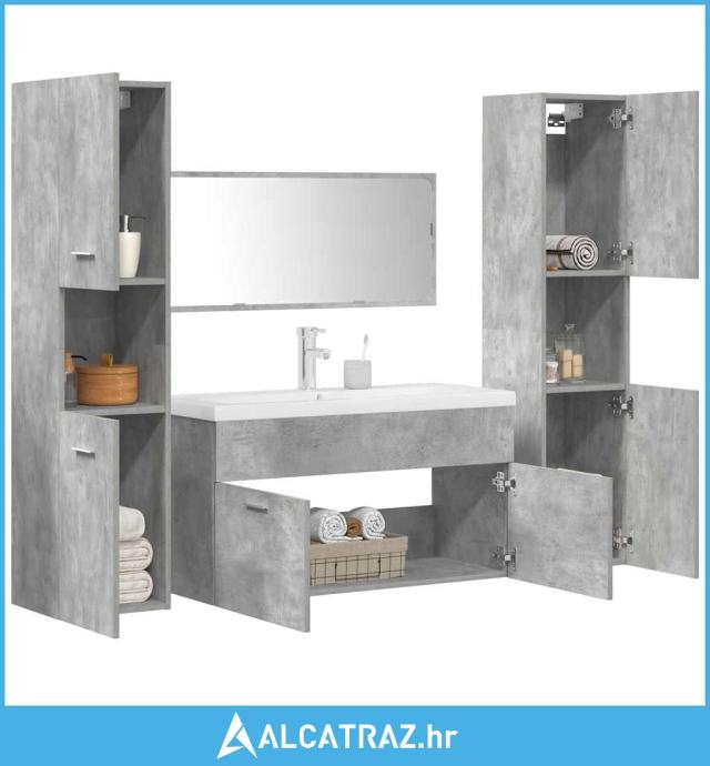 5-dijelni set kupaonskog namještaja siva boja betona drveni - NOVO