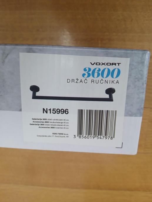 Nov, u originalnom pakiranju, držač ručnika Voxort 3600, crni, 45 cm, 1/1, zidni. Ne šaljem poštom. Preuzimanje u Splitu.