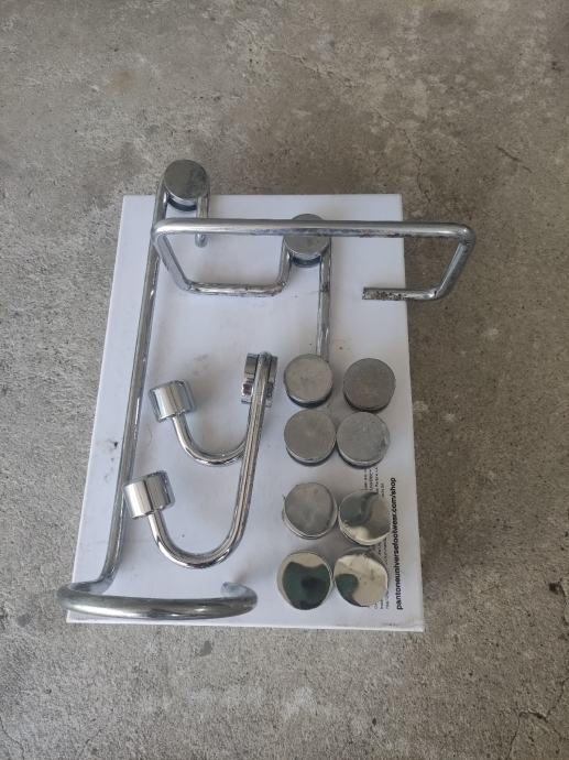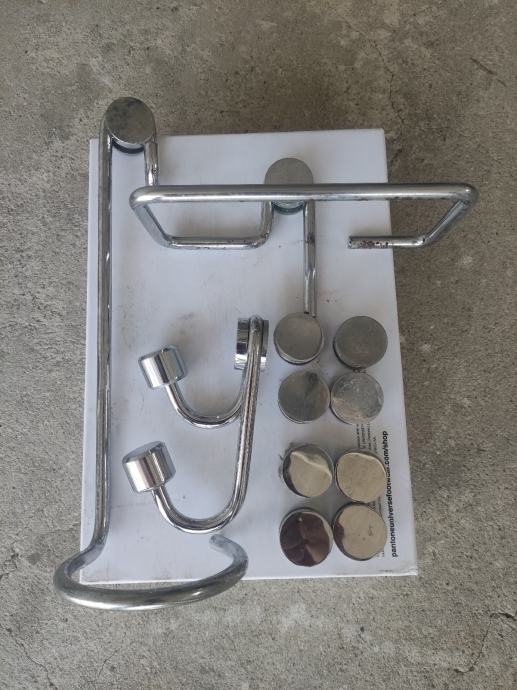 Prodaju se držači kromirani za toaletni papir,ručnike,WC četku i četiri komada za ogledalo kupaonsko,nije kina.Sve zajedno 20eura.