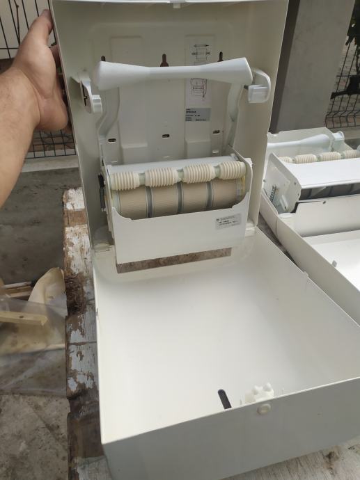 Imam dva držača toaletnog papira Diverey za restorane kafiče konobe i sl. i jedan držač tekučeg sapuna Diversey.Mehanizam od držača toaletnog papira radi i imam jedan kljuć za oba dva, također i držač tekućeg sapuna isto je ispravan.Cjena za sve je 20 eur.