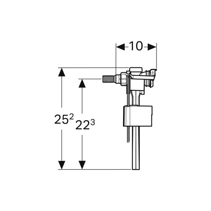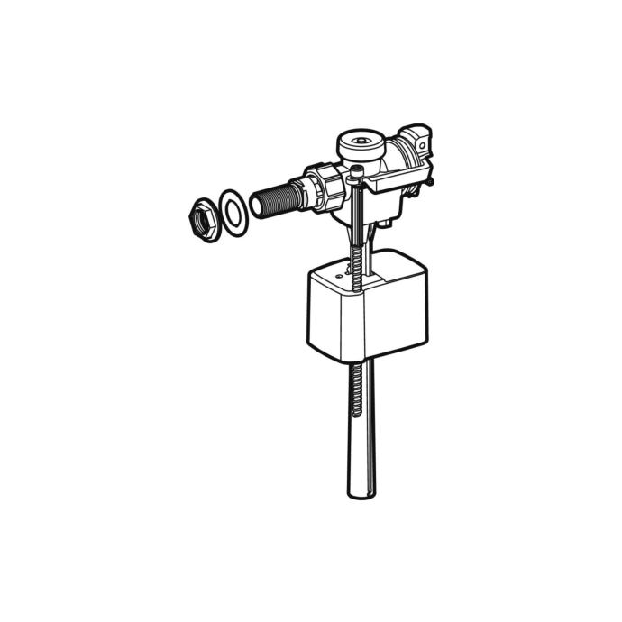 Geberit uljevni ventil tip 333, priključak vode bočno, 3/8", nazuvica od mesinga Tlak protoka: 0.1-10 bar Buka u vodovima kod 3 bara: 15 dB(A) Buka u vodovima kod 5 bara: 21 dB(A) Maksimalna temperatura skladištenja: 40 °C Maksimalna temperatura vode: 25 °C - Za ugradnju u nazidne vodokotliće s priključkom vode bočno - Za keramičke vodokotliće - Za pitku vodu - Za priključke vode 3/8''