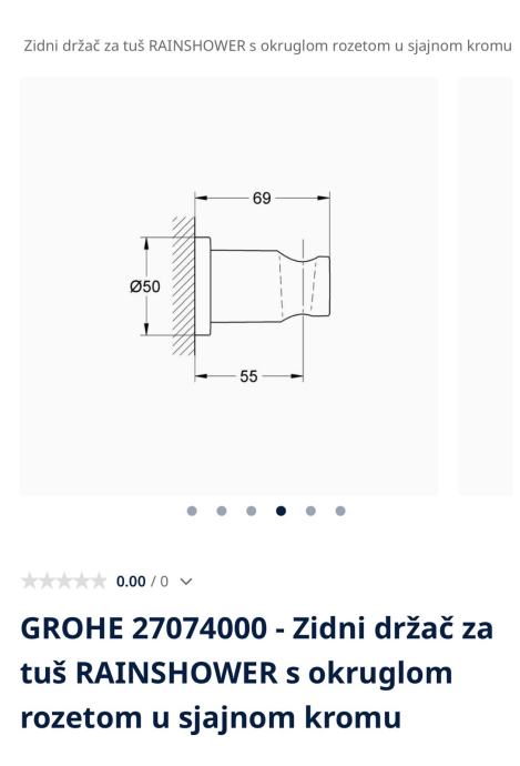 GROHE 27074000 - Zidni držač za tuš RAINSHOWER s okruglom rozetom u sjajnom kromu