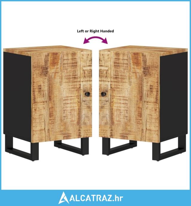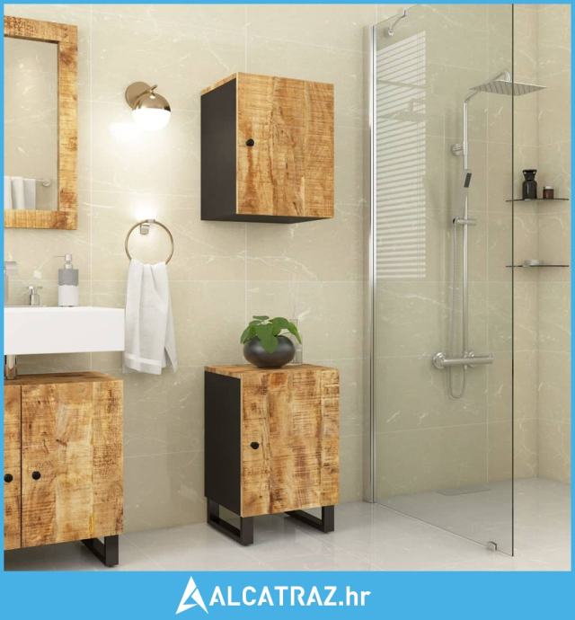- Masivno drvo manga: Ovaj kupaonski ormarić napravljen je od masivnog drva manga u kombinaciji s konstruiranim drvom. Masivno drvo manga snažno je, tropsko tvrdo drvo, koje se upotrebljava za izradu čvrstog namještaja. Njegovi prekrasni drveni godovi čine svaki komad namještaja malo drugačijim od sljedećeg.