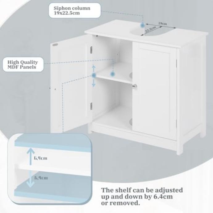 【Savjet prije kupnje】Dimenzije: cca. 60 x 30 x 60 cm, s otvorom za sifon (19 x 22,5 cm). Molimo Vas da prije kupnje izmjerite veličinu sifona i usporedite dimenzije našeg otvora za sifon. Za detaljne dimenzije pogledajte naše dijagrame veličina proizvoda.
