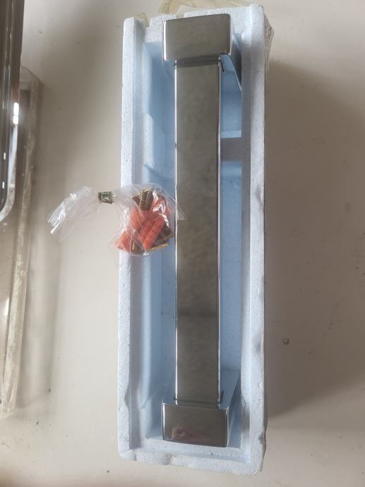 Novi mesingani, četvrtasti držač za ručnike. Sa svime za postavu, u kutiji.