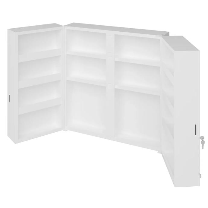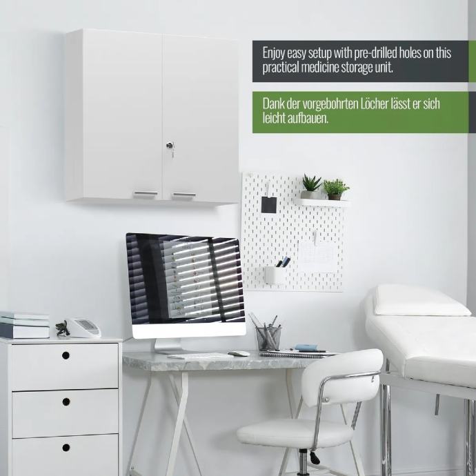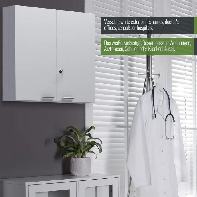 S ovim čeličnim ormarićem za lijekove od jedanaest dijelova možete sigurno pohraniti sve lijekove i druge farmaceutske proizvode koji se odnose na prvu pomoć zahvaljujući bravi na vratima. Ovaj mehanizam za zaključavanje posebno je važan za sigurnost djece u kući. Ormarić se može postaviti na željenu visinu u kupaonici, hodniku ili drugoj prostoriji jer je montaža na zid vrlo jednostavna.