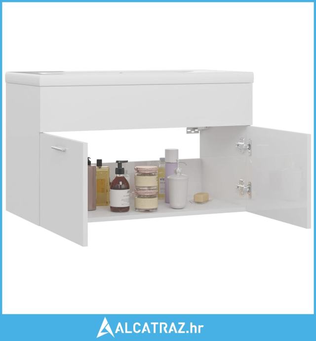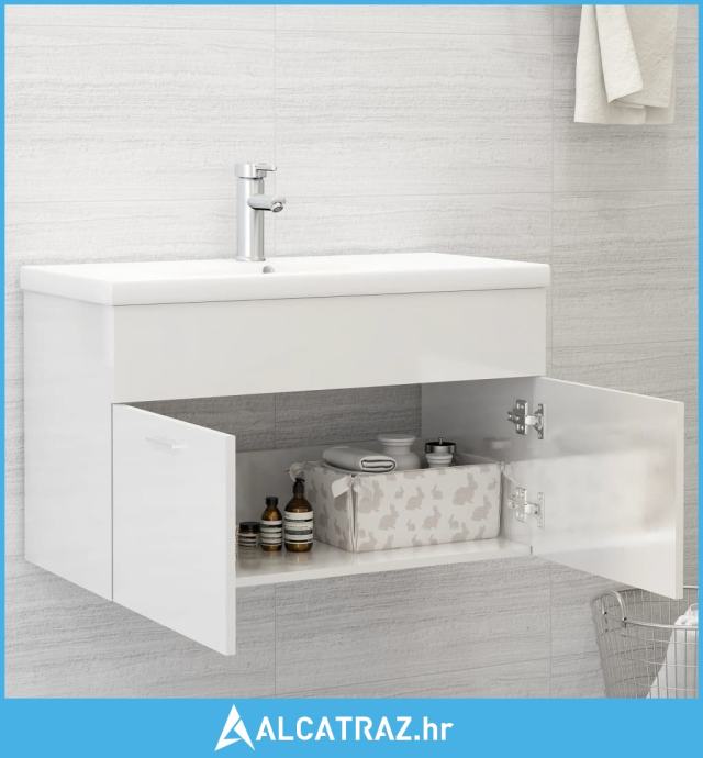 Ormarić s ugrađenim umivaonikom visoki sjaj bijeli drvena - NOVO
