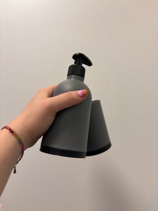 Sive plastične posudice za sapun i četkice s crnim detaljima. Prodajem u kompletu.