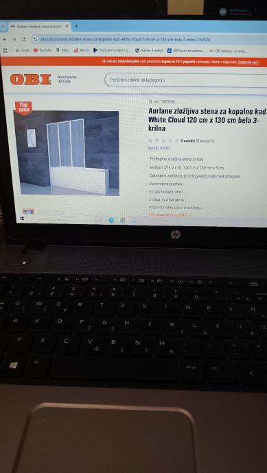 Nova pregrada za kadu sa dodatnom gumom. 120x130 cm.