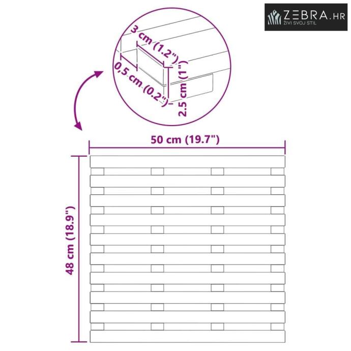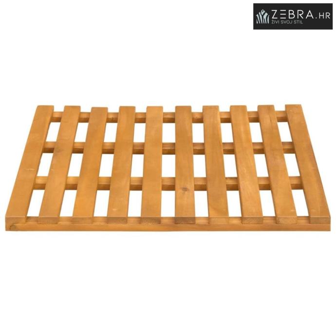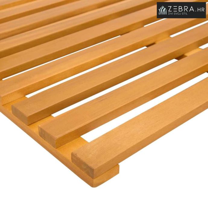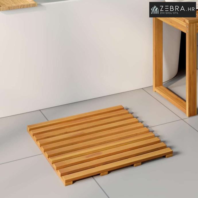 Prirodni drveni materijal Ova prostirka izrađena od solidnog drveta pruža prirodnu estetiku koja se uklapa u razne stilove kupaonica. Drvo donosi toplu atmosferu i prirodnu teksturu koja obogaćuje ambijent.