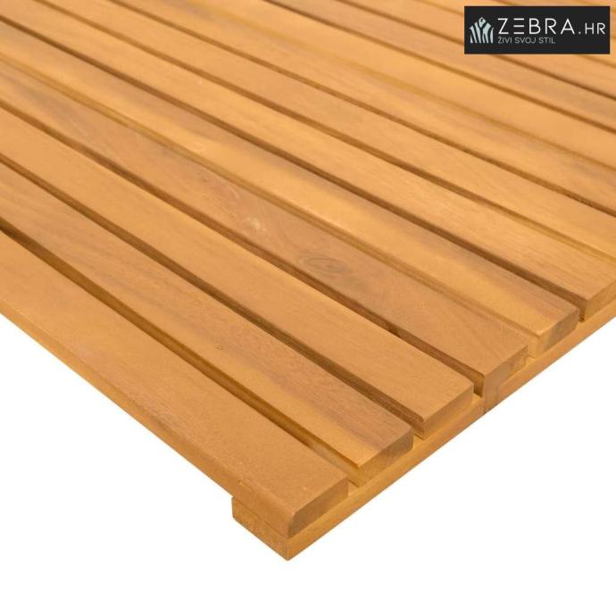 Materijali: Ova kupaonska prostirka rađena je od vrhunskog drveta, što joj daje čvrstu i pouzdanu površinu s prirodnom otpornošću na vodu. Nauljena završna obrada osigurava trajnost i privlačnost, donoseći sofisticiranost u svaki kupaonski prostor.