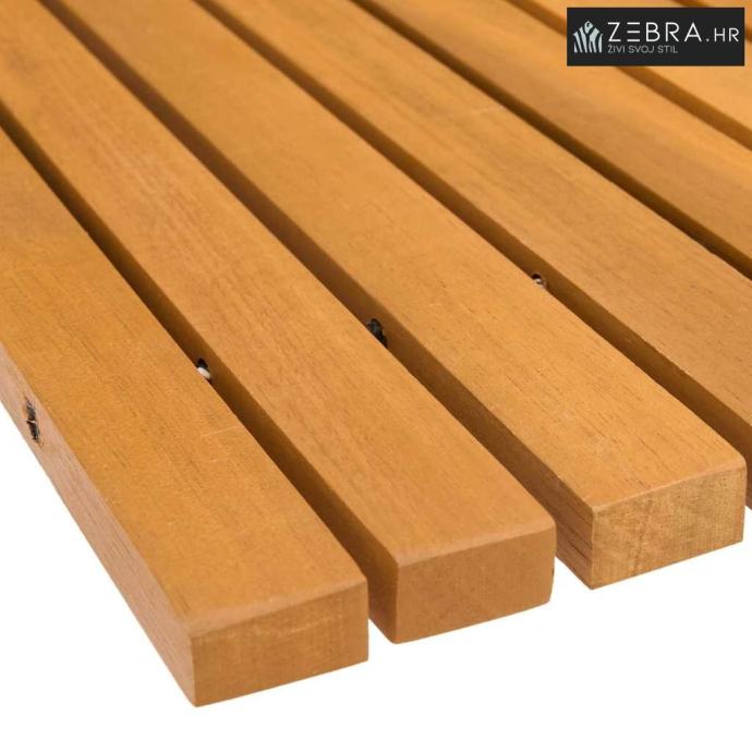 Izrada od drva: Ova drvena prostirka daje čvrstoću i prirodnost. Nauljena završna obrada poboljšava boju i štiti od vlage, čime ostaje atraktivna tijekom vremena.