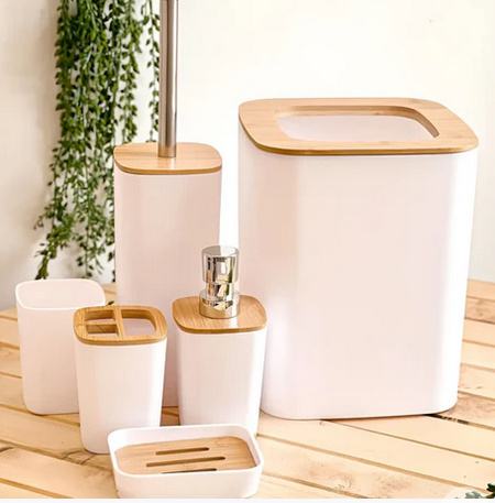 Ovaj elegantan kupaonski set ne samo da pruža organiziran i čist izgled, već i podiže ukupni dojam interijera. Savršen poklon za useljenje, renovaciju ili kao praktičan dodatak vašem domu.