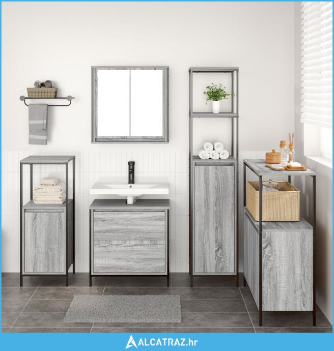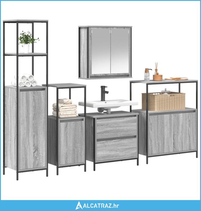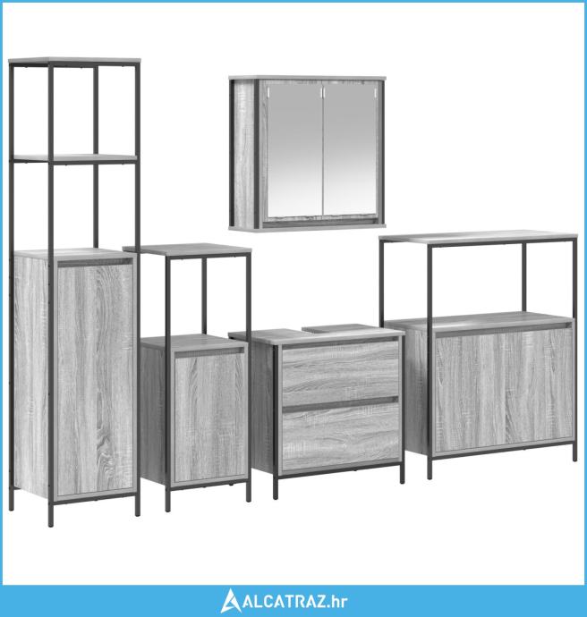 Set kupaonskog namještaja od 5 komada - sivi sonoma, drvo - NOVO
