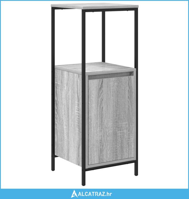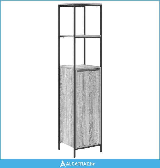 Ovaj moderni set za skladištenje kupaonice sjajan je spoj funkcionalnosti i stila. S elegantnom siva sonoma završnom obradom, ova višenamjenska skladišna postavka može držati sve tvoje toaletne potrepštine dok tvoj prostor izgleda odlično.