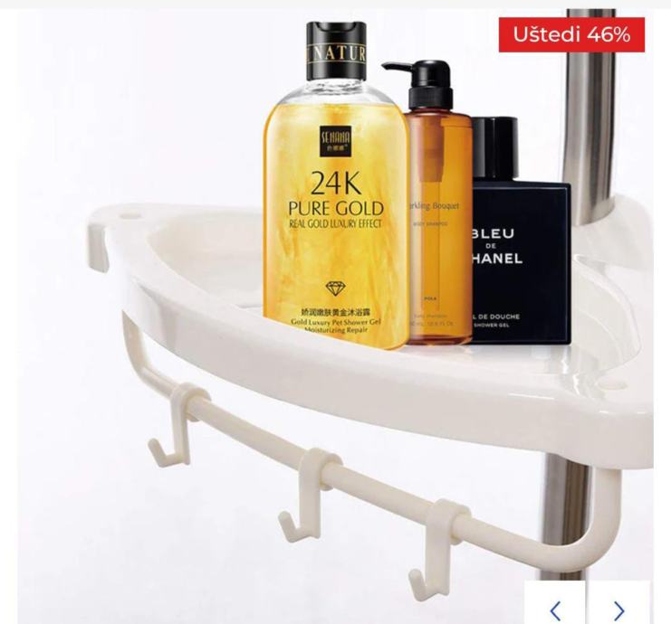 Paket uključuje: 1 x kutni poličar za kupaonicu, 1 x upute za montažu