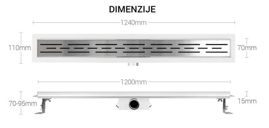 ODVOD OD NEHRĐAJUĆEG ČELIKA / VODOOTPORNA MEMBRANA / SKLOP NISKOG ODVODA / POKLOPAC CIJENE 1200 mm