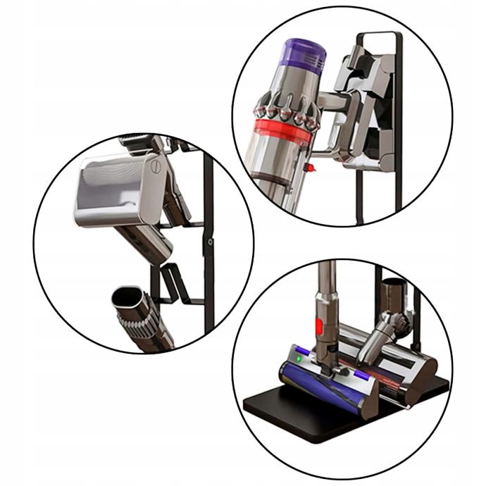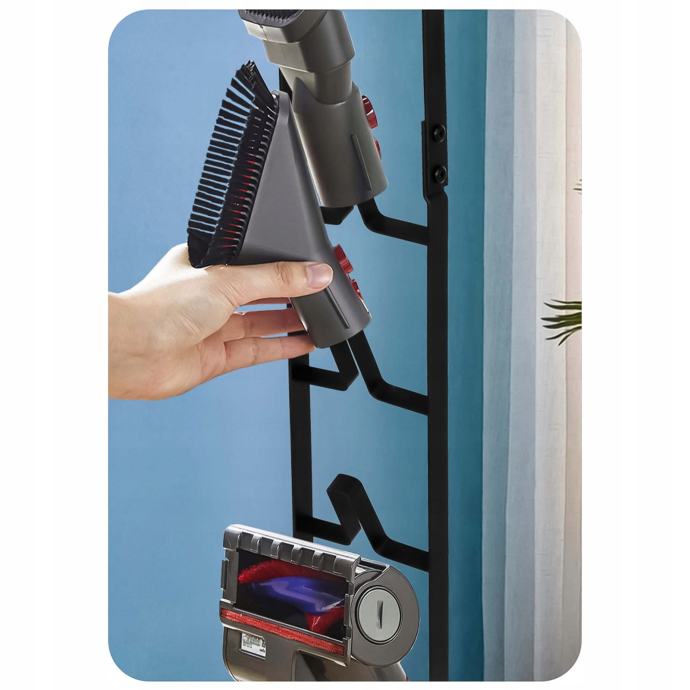 Postolje vam omogućuje da na jedno mjesto postavite usisavač i pribor bez bušenja ili ugradnje na zid. Njegova robusna metalna struktura pruža stabilnost, dok minimalistički dizajn nadopunjuje svaki prostor. Dodaci za pribor također su praćeni, što vam omogućuje jednostavno organiziranje svih uređaja za čišćenje vakuuma.