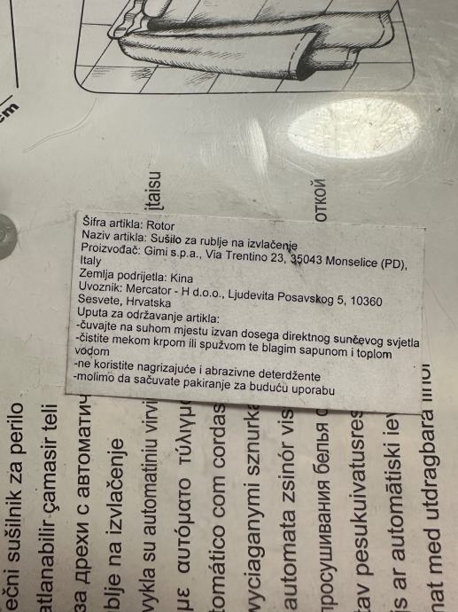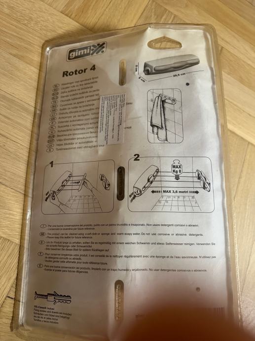 Prodajem novo uže za sušenje rublja Gimi Rotor 4. Radi se o praktičnom sustavu s uvlačećim užadima ukupne duljine 14 metara. Uže se jednostavno izvuče kad je potrebno, a nakon sušenja uredno se uvuče nazad i ne zauzima prostor. Dolazi u originalnom, neotvorenom pakiranju.