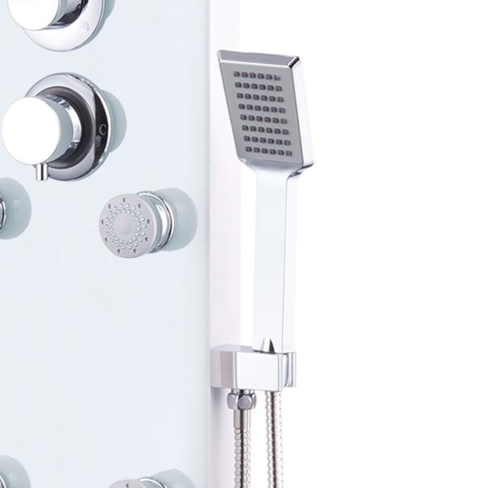 Toranj za tuširanje izrađen je od nehrđajućeg čelika i kaljenog stakla. Kaljeno staklo se proizvodi kontroliranim toplinskim ili kemijskim postupkom, što ga čini trajnijim i sigurnijim u usporedbi s normalnim staklom. Ima tri funkcije tuširanja: kišni tuš, masažni tuš i ručni tuš koji se lako može odabrati. Silikonske mlaznice su otporne na stvaranje kamenca. Uronite u istinski opuštajuće iskustvo tuširanja i uživajte u modernom stilu ovog lijepo dizajniranog panelskog sustava za tuširanje! Sklapanje je jednostavno.