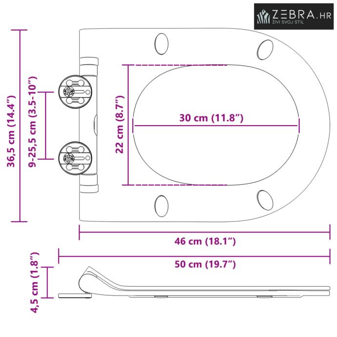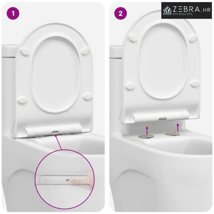 Sustav brzog uklanjanja: Ugrađeni mehanizam omogućuje lako skidanje sjedala za čišćenje. Ovaj dizajn olakšava održavanje higijene i pomaže vam držati kupaonicu čistom i sigurnom.