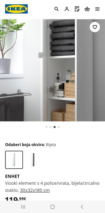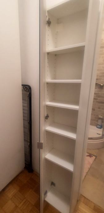 Dimenzije 30×32×180. Ikea ormar sa ogledalom,4 police . Prodajem radi selidbe. U jako dobrom stanju. Cijena 35 eur.