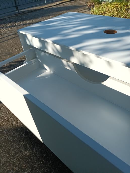 Prodajem element ispod umivaonika Ideal aqua iz feroterma...... Element je dimenzija širine 980mm, visine 330mm i dubine 490mm. Ima jednu ladicu na tip on (dodir).... Boja bijela mat... Ima rupu za lavabo i za pipu sa desne strane... NOV kupljen, montiran na zid i skinut radi promjene u dupli.... Ova slika koja je stavljena je samo radi vizualizacije elementa... tako izgleda i cijeli je bijele boje...