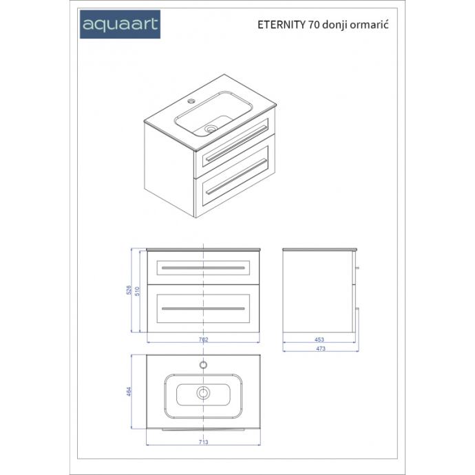 Eternity 70 donji kupaonski ormarić u dekoru grafit supermat je kupaonski ormarić iz linije Eternity modernog dizajna kojeg odlikuje jednostavnost i funkcionalnost. Svojim oblikom uklopit će se u svaki prostor. U kombinaciji s jednim ili dva ormarića dobiva se komplet koji će svaku kupaonicu učiniti savršenom.U širokom asortimanu nudimo proizvode za uređenje kupaonice. Namjera nam je ponuditi najmodernije, kvalitetne i atraktivne proizvode koji odražavaju osobni stil naših kupaca i čine životni prostor ugodnijim.Namještaj iz naše ponude savršeno će se uklopiti u svaku kupaonicu i pružiti joj dašak elegancije, izrađen od visoko kvalitetnih materijala.Najbolji izbor za sve one koji žele u svojoj kupaonici imati moderan i elegantan izgled po povoljnim cijenama.Opis:-korpus od iverala-fronta MDF- ugradbeni keramički umivaonik- sifon nije uključenŠirina: 71,50 cmVisina: 52,50 cmDubina: 46,50 cmODRŽAVANJE: brisanje vlažnom krpom uz korištenje veoma blagih deterdženata. Ne koristiti abrazivna sredstva jer bi moglo doći do oštećivanja površina.Garancija 1 godina