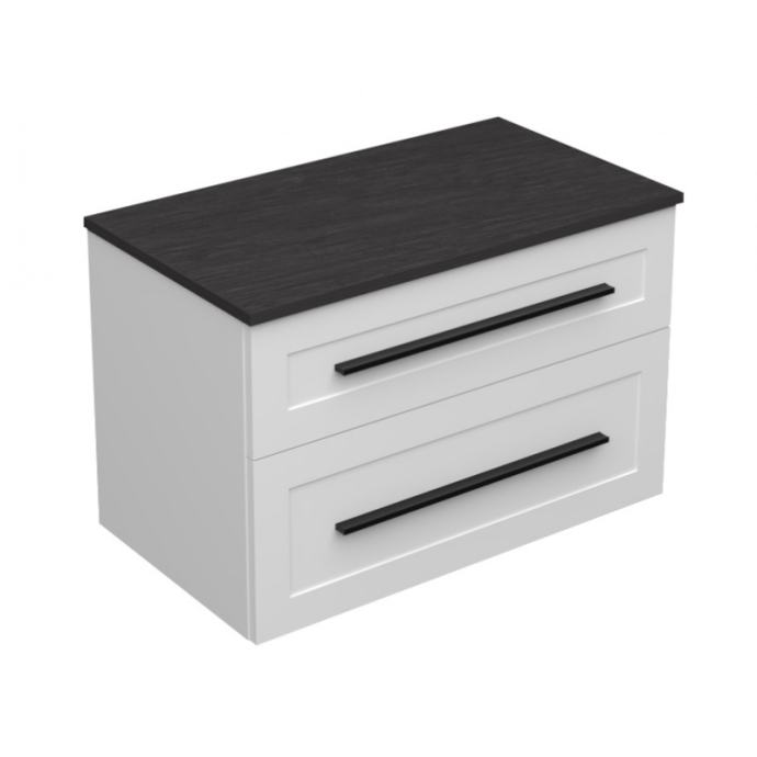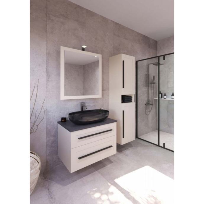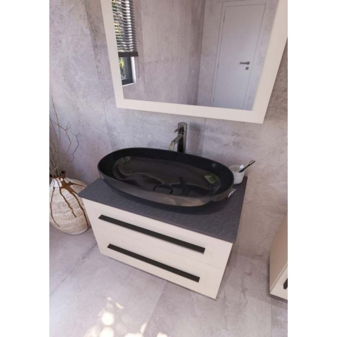 ETERNITY 80 donji kupaonski ormarić u bijelom mat dekoru s crnom ručkicom i pločom Scivaro škriljevac
