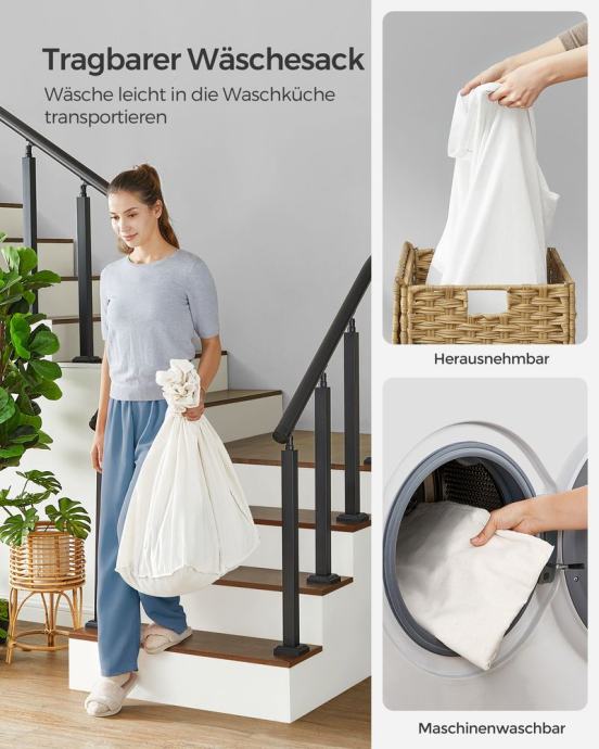 Ručno tkani dizajn daje ovoj visokokvalitetnoj košari za rublje jedinstven stilski štih i donosi dašak prirode u vaš dom. Ne zaboravi pamučnu vrećicu na košari za rublje kad radiš veće čišćenje! Vrećica za rublje se može ukloniti kako bi se olakšalo čišćenje; Torbica se također može prati u perilici! Za sljedeći dan pranja! Čvrsta košara za rublje s metalnim okvirom, koja ima 3 pretinca, 1 bočni džep i ukupni kapacitet od 140 L. Osim toga, ova korpa za rublje može se postaviti u samo nekoliko minuta i može se lako sklopiti kada se ne korist. Razvrstajte svoju svijetlu, tamnu i osjetljivu odjeću odvojeno u ovoj korpi za pranje rublja s 3 odjeljka tako da ne morate preturati okolo na dan pranja rublja. Za donje rublje predviđen je bočni džep! Omogućuju vam da lako gurate kolica za pranje rublja ili ih zaključate kada je to potrebno, pružajući vam sigurnost i udobnost pri korištenju. Za sve informacije nazovite na broj telefona 092/399-75-19