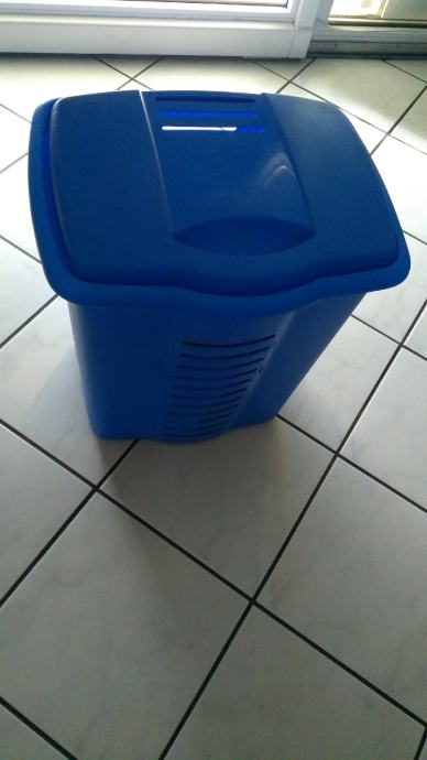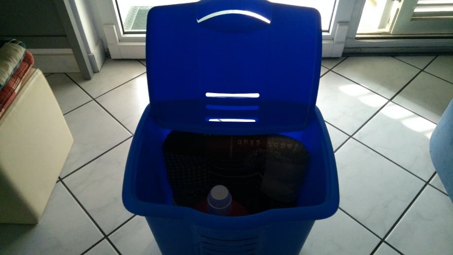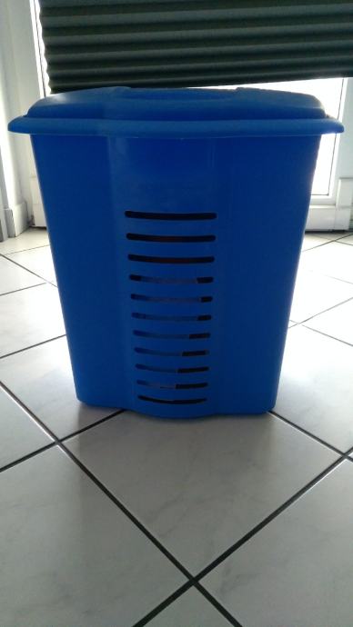 Košara za prljavo rublje ili za nešto drugo u kupaonici. Plastična, plava i dobro očuvana.