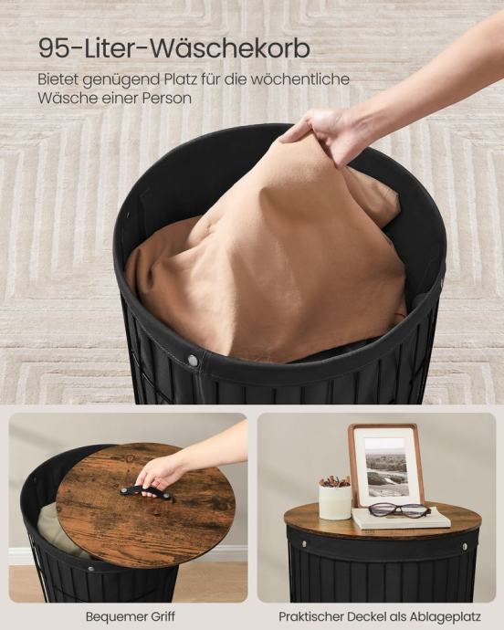 Ova košara za rublje može se koristiti i kao pomoćni stolić ili noćni ormarić. Njegov okrugli oblik i crna boja savršeno se uklapaju u svaku prostoriju, od dnevne do spavaće sobe, i nadopunjuju svaki dekor doma. Sa kapacitetom od 95L, ova okrugla korpa za rublje može primiti 30-40 ljetnih košulja, pružajući dovoljno prostora za tjedno pranje rublja jedne osobe. Iskoristite ovaj veliki kapacitet! Izrađena od čvrstog čeličnog okvira, čvrstih MDF ploča i 600D Oxford tkanine, torba može izdržati do 15 kg, a poklopac može izdržati do 5 kg. Napunite košaru za rublje svim svojim prljavim rubljem. Ovaj poklopac pruža savršen prostor za pohranu vašeg telefona, tableta ili torbe. Osigurava da vaše rublje ostane bez prašine i skriveno, dok udobna ručka omogućuje lak pristup. S uklonjivom vrećom za rublje i praktičnim ručkama, prijenos vaše odjeće u praonicu je jednostavan i bez stresa. Nema više teških, glomaznih tereta! Za sve informacije nazovite na broj telefona 092/399-75-19