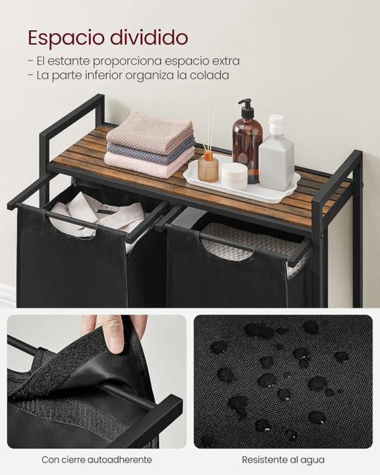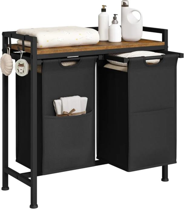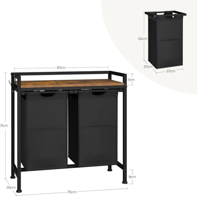 košara za rublje s 2 vreće za odjeću, košara za prljavo rublje 40 l, metalna konstrukcija, kante za rublje od oxfordske tkanine za kupaonicu i rublje, crna