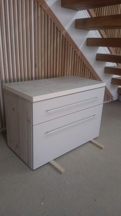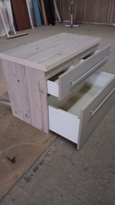 Namještaj izrađen od iverala,gornja ploča debljine 36 mm,fronte akril pet mat.Visina elementa 62cm,širina 90 cm,dubina 45 cm.Ladice sa mekanim zatvaranjem,soft close.Element bio jednom izložen na sajmu proizvođaća namještaja,nov,nikad korišten...