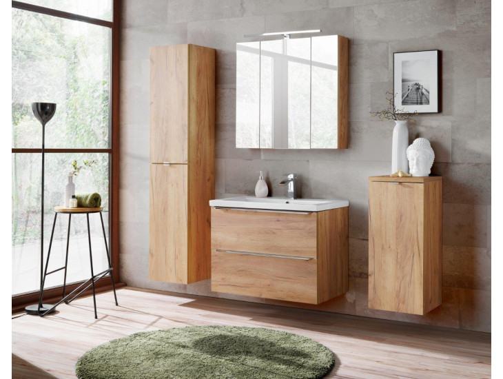 Osvježite svoju kupaonicu s kupaonskim blokom CAP80. Kupaonski blok sadrži umivaonik, ormarico ispod umivaonika, ormar s ogledalom, velik viseći ormar i jednu malu ormaricu. Kupaonski blok ima mekani sistem zatvaranja. Umivaonik je KERAMIČAN.