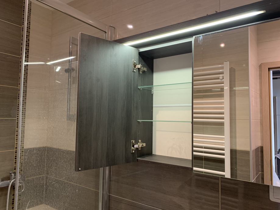 1. Element iznad umivaonika s ogledalom na vratima ormarića i LED rasvjetom, dim. 100 (š) x 64 (v) x 21 (d) - OČUVAN, U ODLIČNOM STANJU