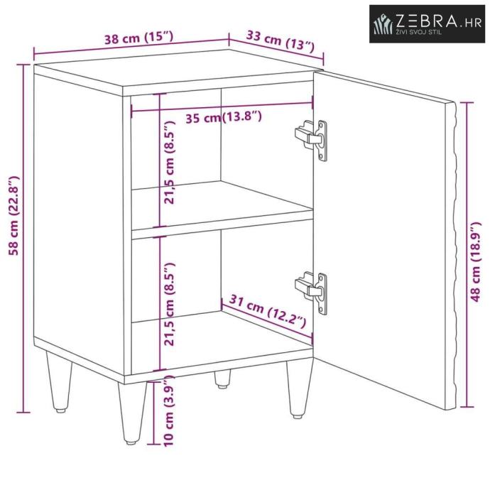 Sveukupne dimenzije: 38 x 33,5 x 58 cm (D x Š x V)
