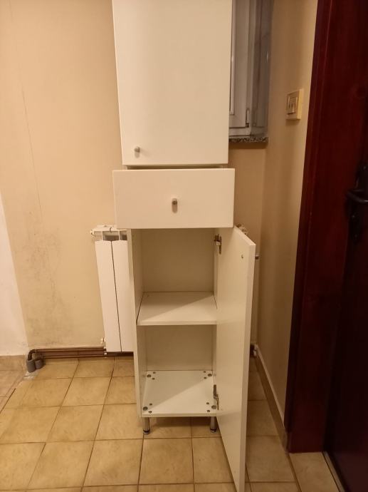 Prodaje se visoki, uski kupaonski ormar, bijeli pogodan za manja kupatila, u izvrsnom stanju, neostecen, visina 2m. sirina 35cm. dubina 30cm. Cijena 50€. Na 0981803270.